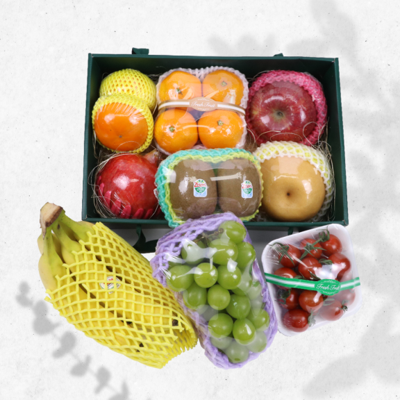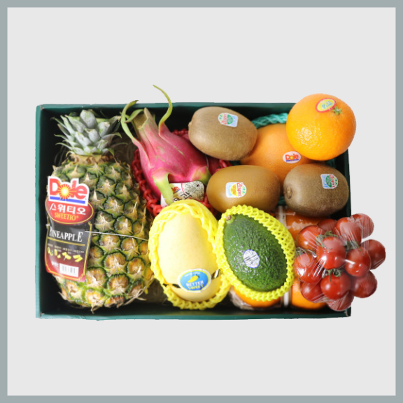 자몽1, 망고1, 용과1, 그린키위2 골드키위1, 파인애플1 황금향1 귤6, 아보카도1, 방울토마토 250g